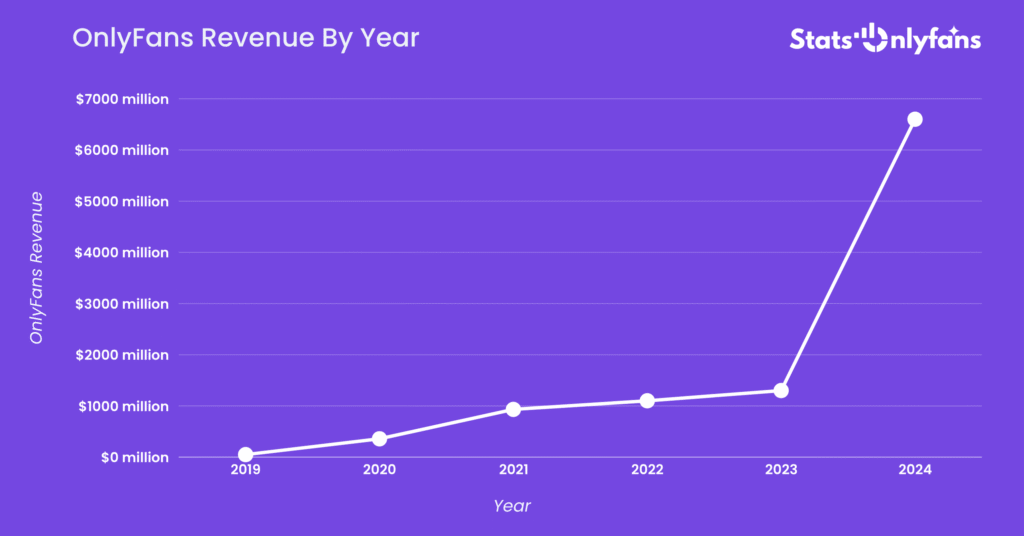 Between 2019 and 2023, OnlyFans saw a staggering 2,553% revenue growth, showcasing its remarkable evolution from a niche platform to a dominant force in content monetization.